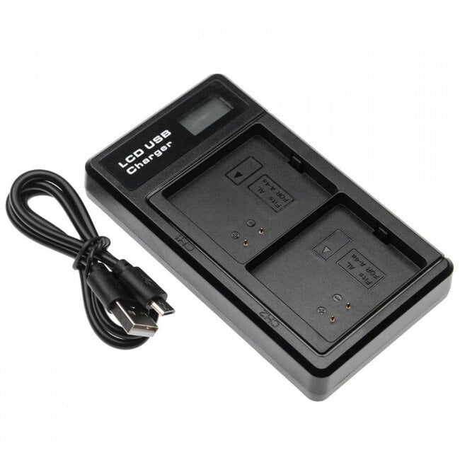 Dieses einfache Ladegerät wird über einen Micro-USB (Typ B) Anschluss mit Strom versorgt. Dies ist ein weit verbreiteter Anschluss bei (neueren) Kameras sowie Smartphones und Tablets. Sie können das Ladegerät Ihres Geräts, Smartphones oder Tablets verwenden, um den Akku mit diesem kompakten Ladegerät aufzuladen. Ein weiterer Vorteil ist, dass Sie den Akku unterwegs z.B. über eine Powerbank laden können.