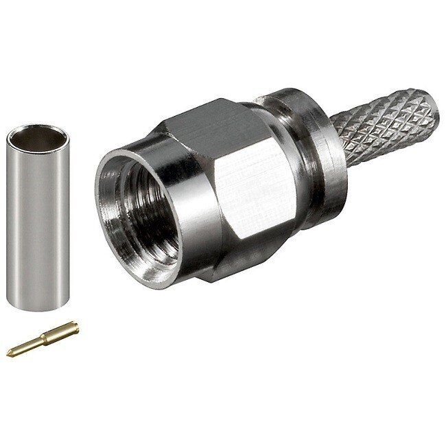 Befestigen Sie diesen männlichen SMA-Stecker mit einer Crimpzange an einem 50 Ohm RG-174 Kabel.