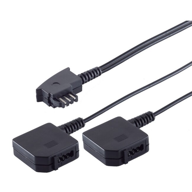 Verwenden Sie diesen Splitter, um 2 Kabel mit TAE-F-Stecker an 1 TAE-F-Anschluss zu verbinden. So können Sie 2 Telefone an einem Anschluss anschließen.