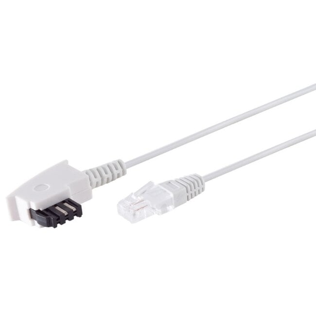 Verwenden Sie dieses Kabel, um einen DSL/VDSL (Modem-)Router mit RJ45-Anschluss mit einer Wandsteckdose mit TAE-F-Anschluss zu verbinden. Das Kabel ist 2-adrig und überträgt eine analoge Leitung.