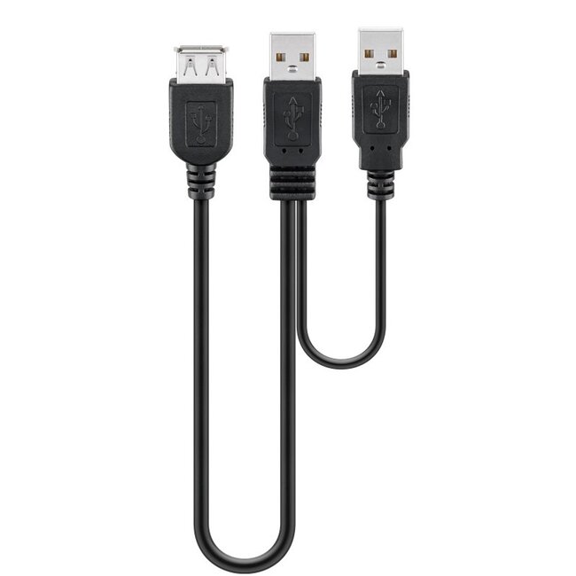 Verwenden Sie dieses Y-Kabel, um ein USB-Peripheriegerät mit 2 USB-Anschlüssen Ihres PCs, Notebooks und/oder Ladegeräts zu verbinden. Der zweite USB-Stecker liefert zusätzliche Stromversorgung, sodass beispielsweise eine externe Festplatte über den zweiten USB-Anschluss mit zusätzlicher Energie versorgt wird. Dadurch ist manchmal ein externes 5V-Netzteil nicht mehr erforderlich.