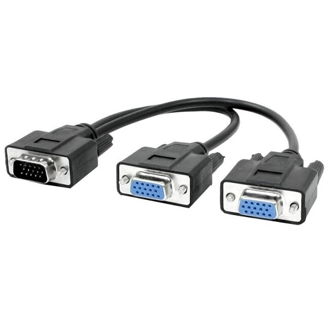 VGA-Splitter mit 15-poligen Steckverbindern. Mit diesem Splitter können Sie Ihren Computer oder Ihr Notebook mit 2 VGA-Bildschirmen verbinden. Hervorragendes Preis-Leistungs-Verhältnis und sehr günstig im Preis.