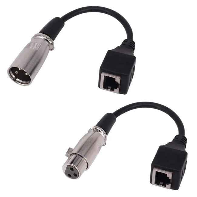Die Lieferung umfasst 2 Stück. Einen Adapter verwenden Sie, um den XLR-Anschluss in einen RJ45-Ethernet-Port umzuwandeln. Anschließend schließen Sie das Netzwerkkabel an und auf der anderen Seite des Netzwerkkabels verwenden Sie den zweiten Adapter, um den RJ45-Ethernet-Anschluss wieder in einen XLR-Anschluss zu verwandeln. Die Adapter sind nicht richtungsgebunden, Sie können also selbst entscheiden, an welchem Adapter Sie das Signal einspeisen und an welchem Sie es ausgeben.