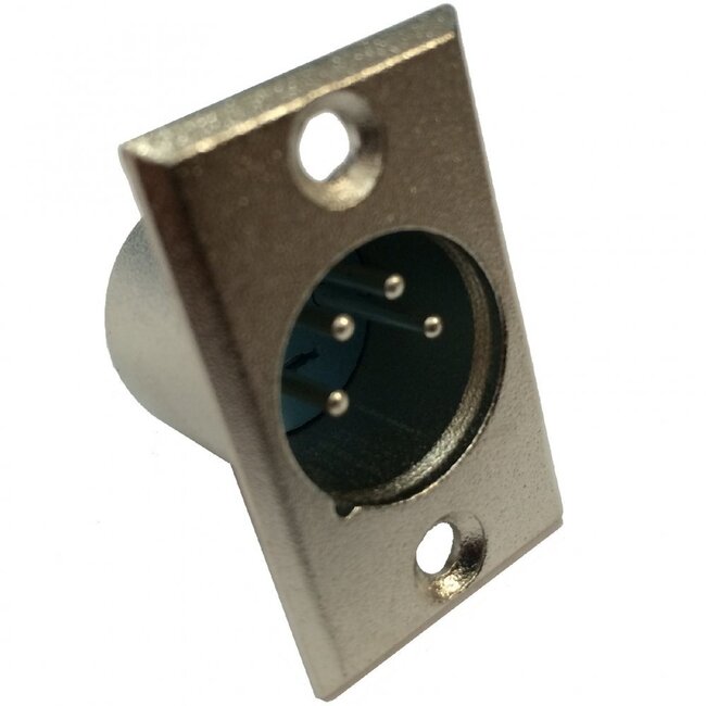 Dieser 4-polige Einbau-XLR-Stecker kann verwendet werden, um einen Lautsprecher, ein Möbelstück, ein Paneel usw. mit einem XLR-Anschluss auszustatten. Der 4-polige XLR-Stecker wird unter anderem bei Intercom-Headsets, professionellen Videokameras (DC-Stromversorgung), Lichttechnik und Tischmikrofonen eingesetzt (der 4. Pin dient zur LED-Anzeige, die anzeigt, dass das Mikrofon eingeschaltet ist).