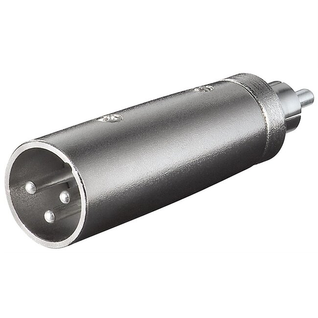 Verwenden Sie diesen Adapter, um ein XLR 3-poliges Kabel, beispielsweise von Ihren (aktiven) Lautsprechern, an ein Gerät mit Cinch-Ausgang, meist ein Mischpult, anzuschließen. Wenn Ihr Gerät für beide Kanäle (links und rechts) einen Cinch-Ausgang besitzt, müssen Sie zwei Kabel anschließen, um Stereo-Sound zu erhalten. Der Cinch-Stecker wird auch als RCA-Stecker bezeichnet.
